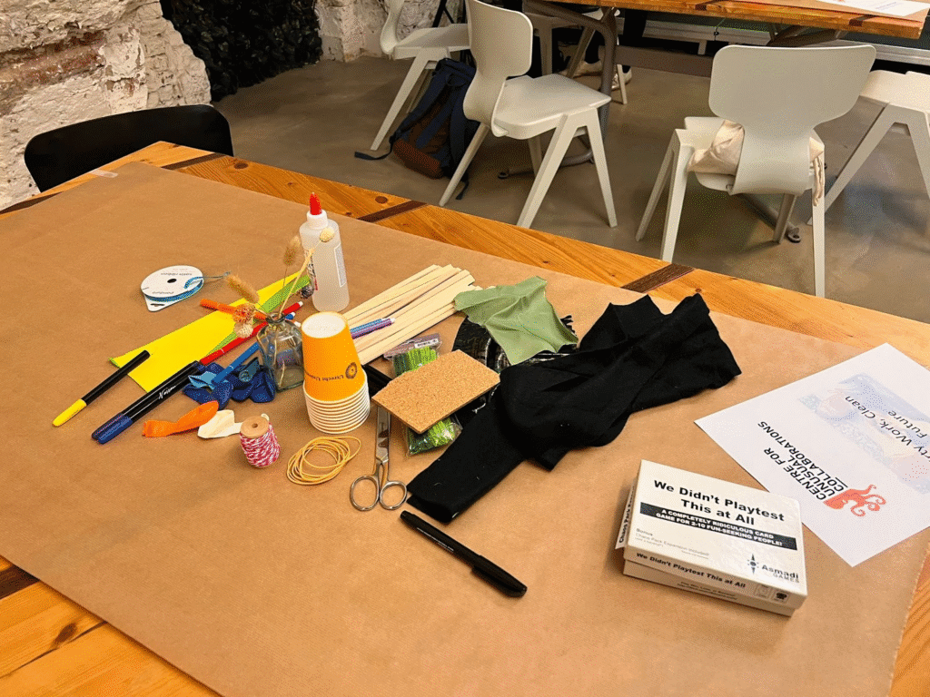 Select a challenge you experience in (interdisciplinary) collaboration (or in your work more generally), start building a metaphorical expression of the challenge, let yourself be surprised by the process of building and use of different materials. (10-15 minutes)