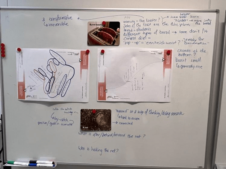 In the Playing With The Trouble context, we intend New Metaphors to be useful for both facilitating collective imagining, and surfacing worldviews. For collective imagining, this could be through creating new metaphors to imagine and reimagine topics and approaches, about new forms of collaboration or institutions (curious about this? Listen to Dan talking about this), or more specifically about a particular topic in research or education. For surfacing worldviews, the New Metaphors activity can help participants understand each other’s current imaginaries and assumptions around a topic, through exploring existing metaphors and new ones.