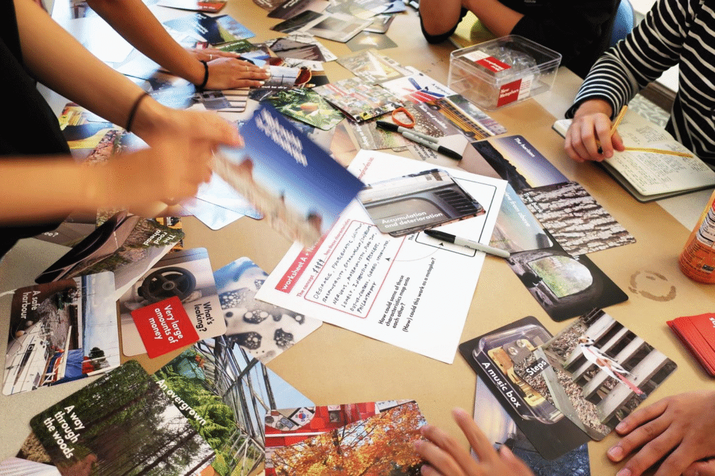 - 100 image cards (download here), each of which has a picture of something (natural or human-made, a ‘thing’ or a situation) with a label for it. Each image has been chosen to be something that could in some way work as a metaphor for lots of other things. They are all intended to be able to work at multiple levels, or with multiple facets or elements to them, and trigger other kinds of ideas beyond what’s on the cards themselves.