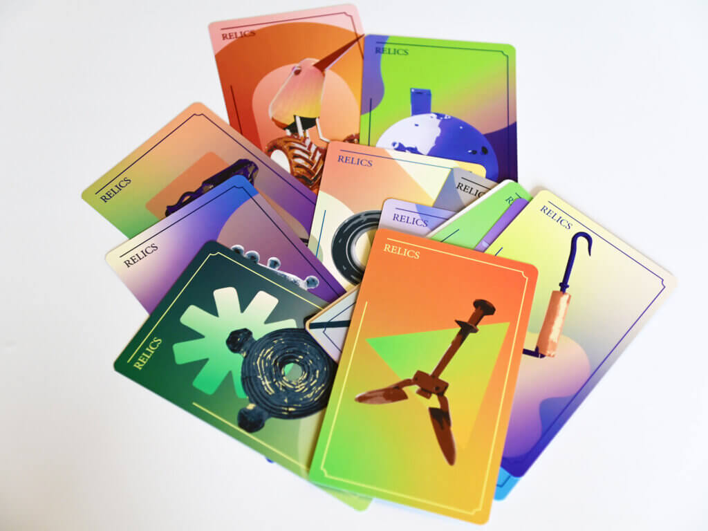 - Draw one Relic card and place it face-up. Together, establish the meaning of this Relic to the imagined world. You are welcome to adjust or remove previous notions to make sense of these cards together (~3 minutes).