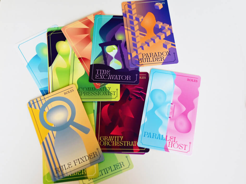 Roles and Relics is a game designed to explore and open-up worldviews, and spark discussion between participants. In small groups you will make use of prompt cards to collectively build new worlds. In the process, you will engage in discussion, reflection, and exploration.