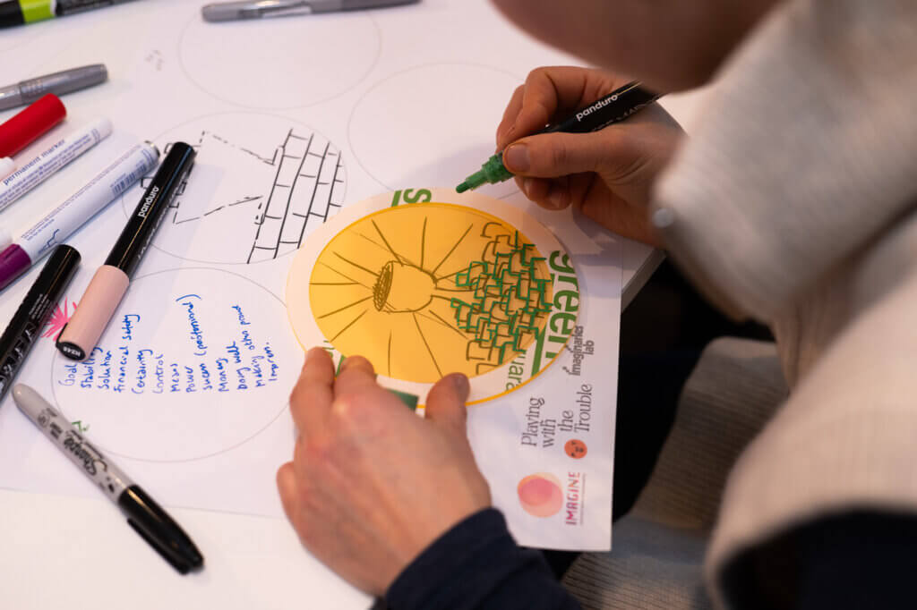 Sunsets and Sunrises was developed as part of the IMAGINE project and adapted for the Playing with the Trouble context. Through workshops with participants in the Netherlands and Norway, we have built on Femke Coops’s work on designing spaces for letting go in sustainability transitions, also taking inspiration from work including Mark Fisher’s writing on nostalgia for lost futures, Candy Chang’s After the End, and Vanessa Andreotti’s Hospicing Modernity.